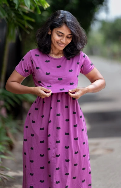 Purple Kitty Maternity & Feeding Premium Loungewear