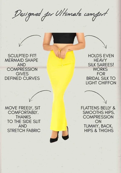Paavay saree contours with perfect waistband helps you to enhance your curves. Fabricated with highly stretchable material gives you a good stretchability.
