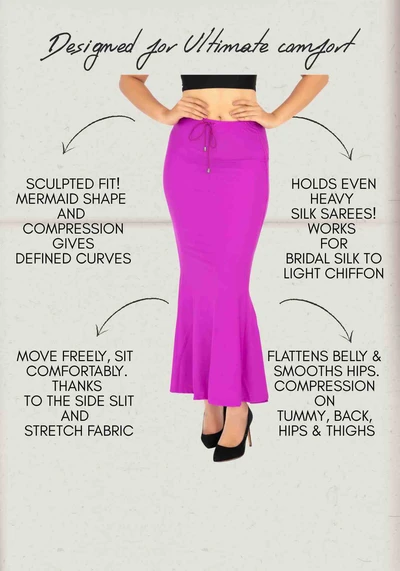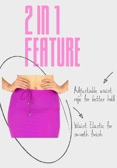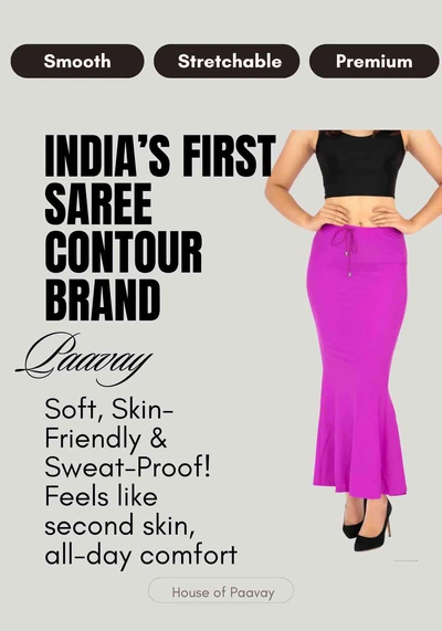 Paavay saree contours with perfect waistband helps you to enhance your curves. Fabricated with highly stretchable material gives you a good stretchability.