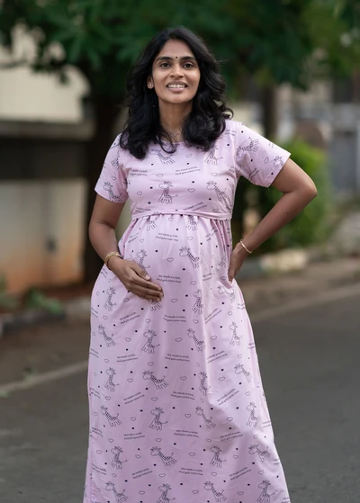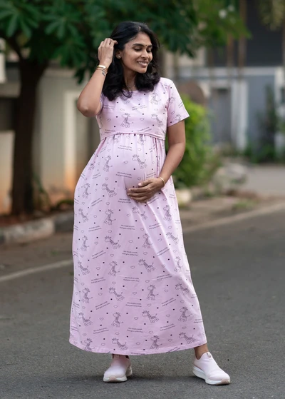 Pink Giraffee Printed Feeding & Maternity Premium Loungewear