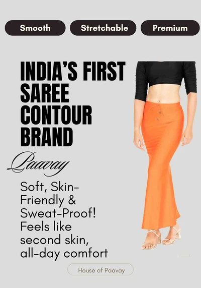 Paavay saree contours with perfect waistband helps you to enhance your curves. Fabricated with highly stretchable material gives you a good stretchability.
