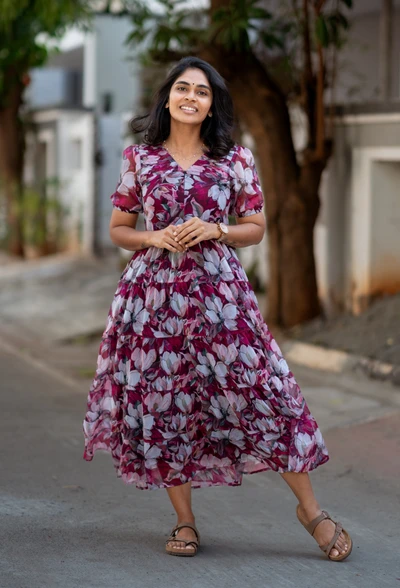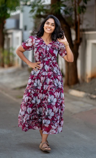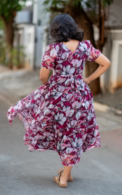 Magenta Floral Chiffon Maxi