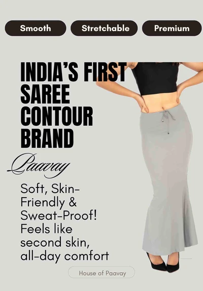 Paavay saree contours with perfect waistband helps you to enhance your curves. Fabricated with highly stretchable material gives you a good stretchability.