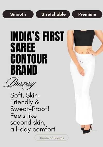Paavay saree contours with perfect waistband helps you to enhance your curves. Fabricated with highly stretchable material gives you a good stretchability.