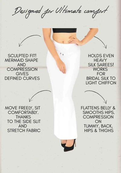 Thank you so much for the Saree shaper it's very much comfortable and I won't feel like I wore skirt inside. I used to feel it's so difficult to walk in Saree bcoz skirt was very disturbing but your Saree shaper is so cool and comfortable so happy with the product and it's quality.